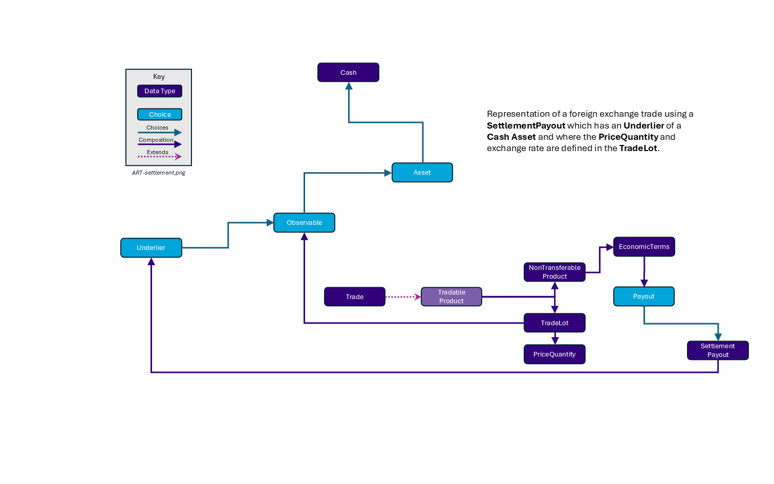 In those cases, the corresponding PriceQuantity object also contains settlementTerms and buyerSeller attributes to define that settlement. The actual settlement amounts will use the price and quantity agreed as part of the tradable product.